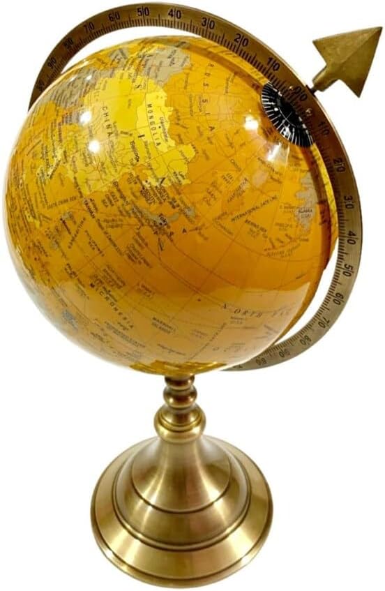 Material : Brass & Plastic Finish : Brass Antique Finish Size of Height : 15 inches, 38 cm Approx. Size of Base : 6 inches, 12 cm Approx. Size of Globe : 8 Inches, 20 cm Approx. Weight : 1.250 kg. Approx. This 15-inch handcrafted brass world map globe features an exquisite antique finish, blending timeless elegance with functionality. Designed as a table-top decorative piece, it showcases intricate engraving and a beautifully crafted armillary sphere, adding a touch of sophistication to any space. Perfect as a unique gift or a stylish addition to your home or office decor, this globe combines artistry and history in a stunning display.