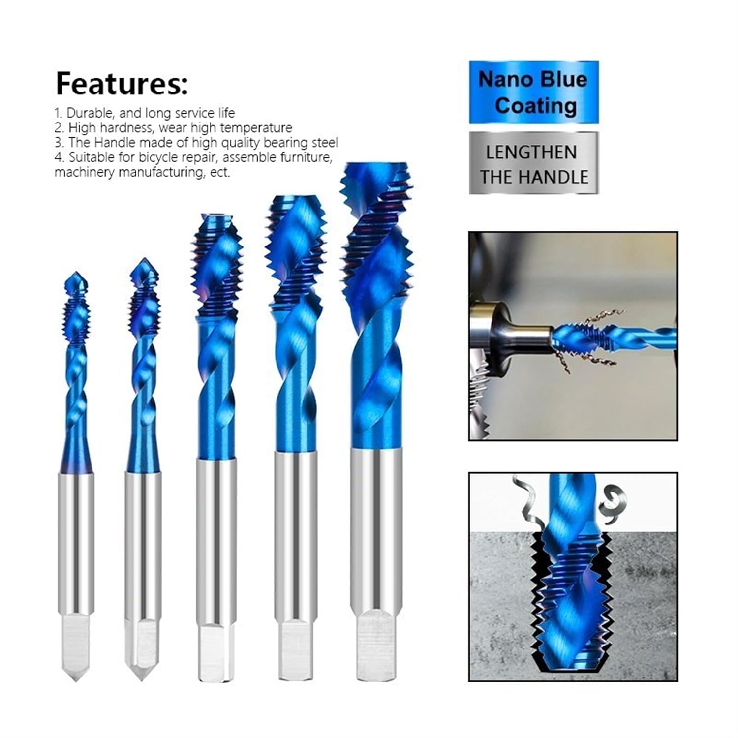 Screw Tap for Aluminum Non-Ferrous Metals processing Blind Holes M3 M4 M5 M6 M8 M10 M12 Metric Tap Two Edge HSS Spiral TapsFeature:1.It's made of High quality Cone body fully ground integral high speed steel.2.It has good impact resistance and reduces the processing cost3.Spiral groove taps chip performance is excellent, tapping smooth.4.Practical and durable.Specification:Material: High Speed SteelStandard: M3-M12 is pointed, M8 and above are flat.Scope of Application: Suitable for bicycle repair, machinery manufacturing,assemble furniture,ect.Package Including:1pc Screw Tap