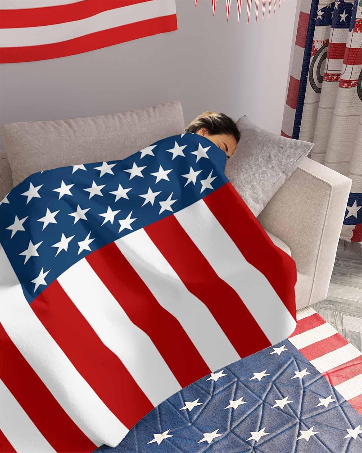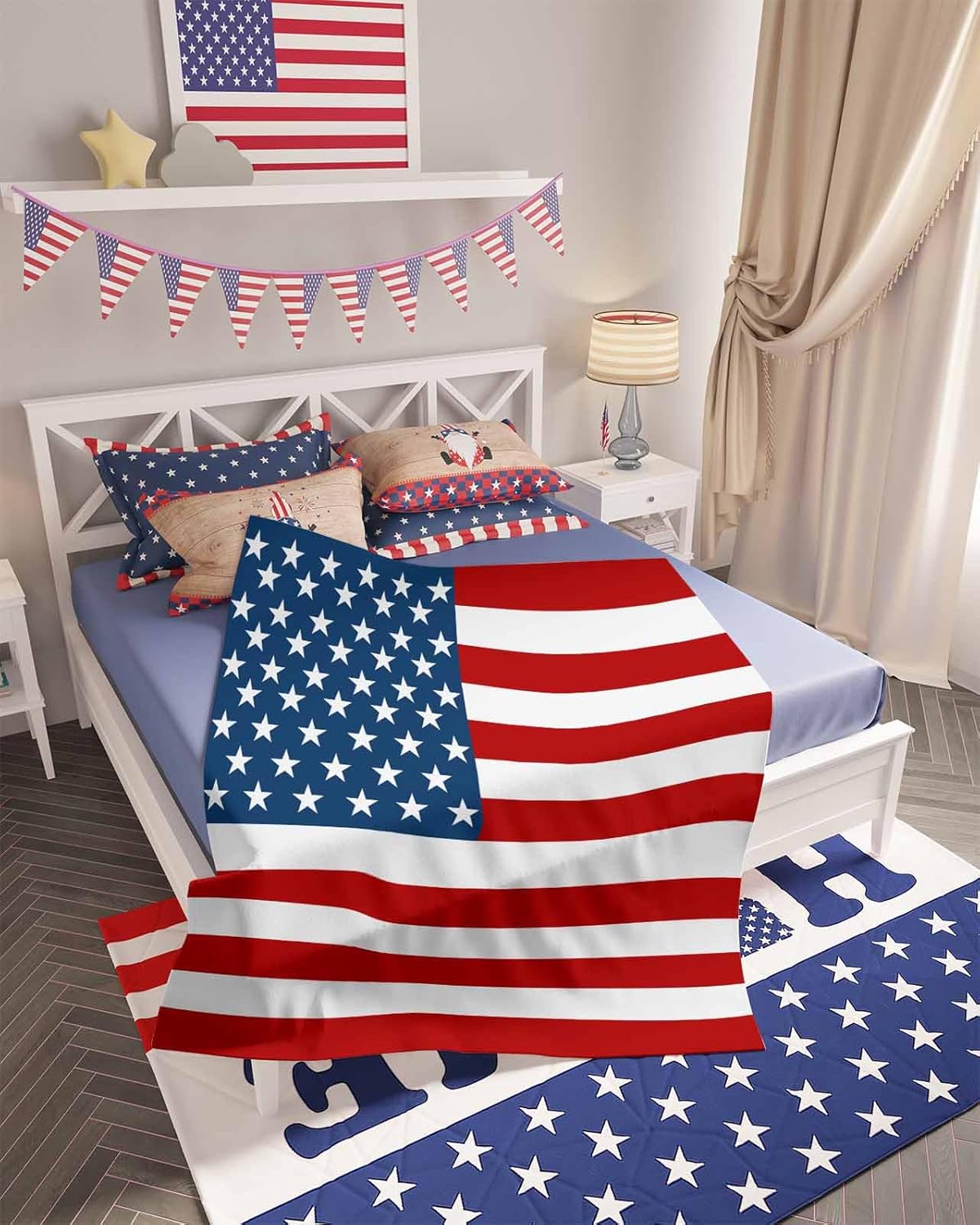 Enjoy Your Comfort Sleep with Soft & Cozy & Warm Patriotic 4th of July Throw Blanket for Independence Day All Season Size Detail30x40 Inch / 32x47 Inch / 40x50 Inch / 40x60 Inch / 50x60 Inch / 50x80 Inch /60x80 InchSuper SoftOur easter throw blanket is incredibly soft to the touch enveloping you in its warmth and comfort.Premium MaterialSuper soft flannel, making you feel comfortable and smooth. One side print, the back is white.Matches delicately and creates a warm atmosphere for your couch, bed, sofa, chair, dorm, nursery, daybed, porch, or any outdoor and indoor use.Exquisite StitchGreat Sewing on a blanket means long-lasting wear.Multiple UsesHelp you keep warm, especially during the cool night or afternoon. Good company for having a hot coffee in your free time. Enjoy the double warmth and tranquillity in beautiful life.This versatile blanket can be used as decorative blanket, bed blanket, or travel blanket for extra warmth and beauty. Also a great decoration that brightens your mood.Easy to Store & CarryYou can take it when traveling, snuggle it in the plane, swaddle yourself on the morning/evening beach, cuddle it through a horror movie, or wear it on a camping/ picnic.Easter Holiday GiftExquisite cute bunny pattern to add love and warm vibe and make it an ideal gift for your family, kids, friends, and lovers.Special NoteBoth machine and hand washable with gentle cycle and lay flat to dry, no bleach, iron on low heat if required.Due to different light conditions and your screen display settings, the actual colors may vary slightly from the pictures.
