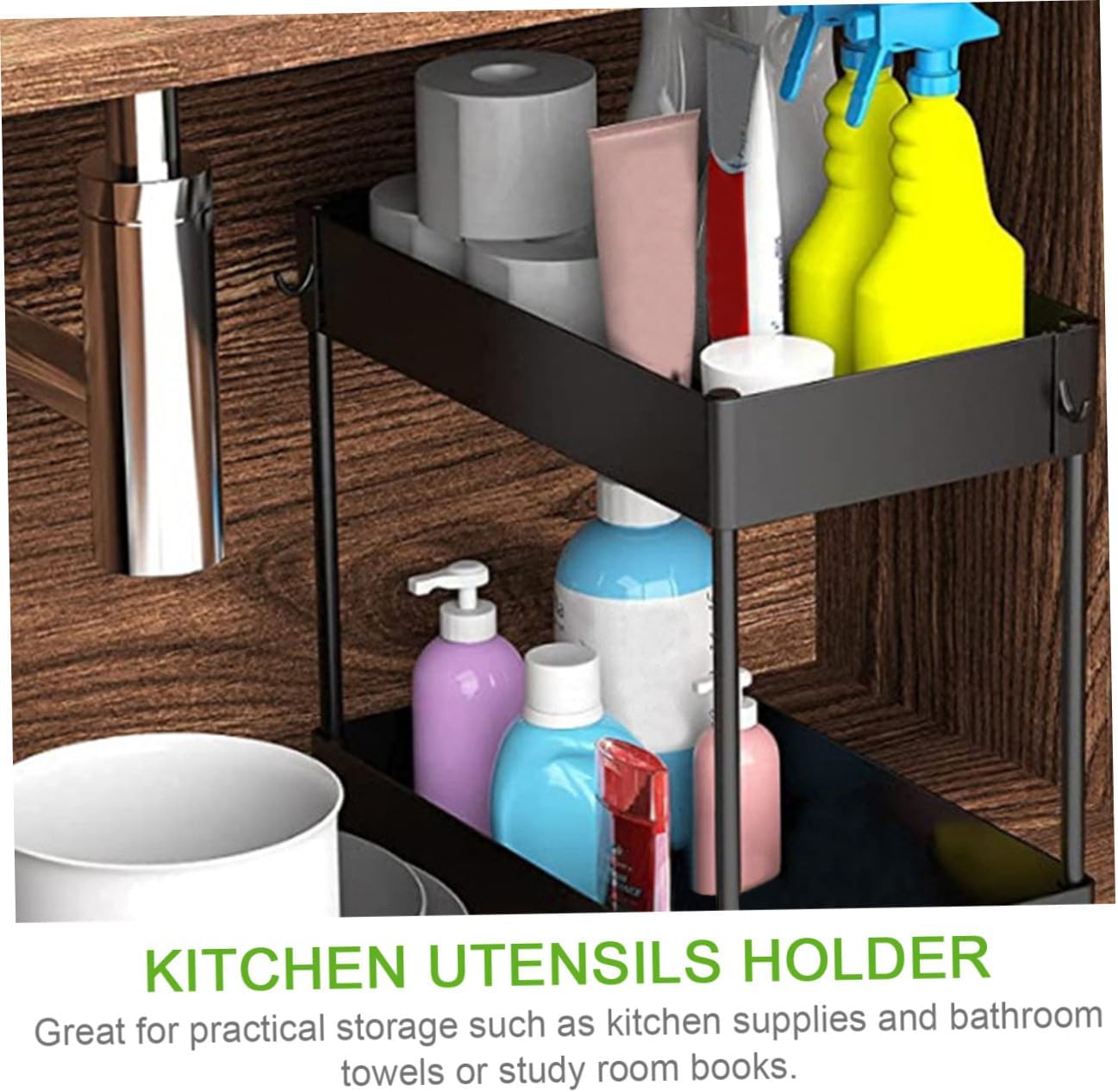 Package Include 1 x Storage Rack Features - Material: Carbon Steel + Plastic Storage Holder. - Color: Black Under Sink Storage Rack. - Size: 40.00X38.00X22.00 cm/ 15.72X14.93X8.65 inch Bathroom Storage Rack. - for hotels, homes, kitchen, small items, which make your room neat and orderly Kitchen Bottle Storage Rack. - Great for storage such as kitchen supplies and bathroom towels or study room books Kitchen Tools. - This kitchen rack has strong pressure resistance, strong texture, easy to clean, it's your ! Organizing Rack - The storage rack is made of carbon steel materials and , , stable Storage Organizer. - Multi-functional storage rack can accommodate small items such as seasoning jars, etc Storage Rack.Goods InformationStorage is made of iron material which is and to use.Seasoning Bottles Storage Rack This storage rack is designed for home use to store your different items.Storage Shelf A nice kitchen or bathroom storage organizer for you.Bathroom Storage Rack As a kind of household multi-purpose tool storage, it has powerful storage capability