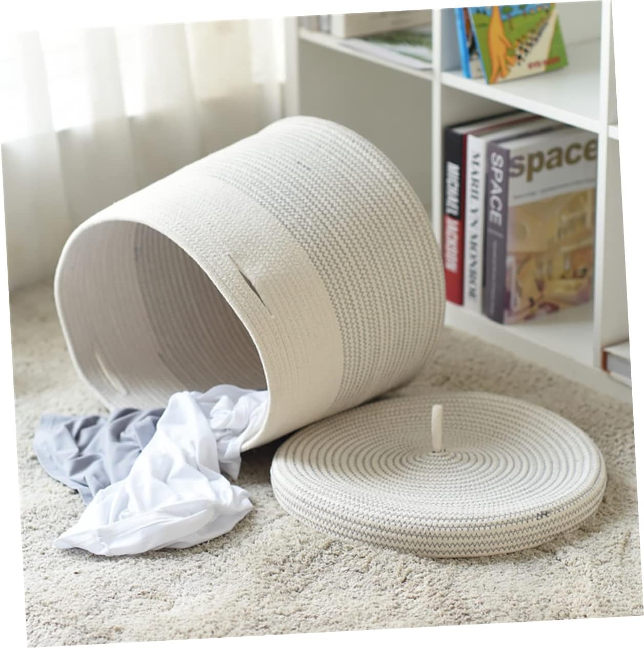 Package Include 1 x laundry basket Characteristics -Size: About 39.00X39.00X35.00cm/15.33X15.33X13.76in Clothing Container. -Material: Cotton rope Storage Basket. -Color:Multi Folding Storage Basket - Wonderful and simple appearance, simple color, classic and practical Clothes Storage Basket. - for housewarming friends, suitable for placing in bedroom, living room, etc Cloth Art Basket. - Simple appearance but practical usage, this storage basket is a great organizing helper for you Clothes Laundry Basket. - Practical and large capacity storage basket to save room space, easy to use and clean Dirt Clothes Organizer. - Easy to use, you can use it to store sundries, making your home neat and ordered Bedroom Organizer.Goods DescriptionDirt Clothes Organizer It is suitable for home and student dormitory. Storage Suitable for home, bedroom, and more.Storage Basket This is clothing storage basket.Clothes Laundry Basket Large-capacity dirty clothes basket, easy to store more clothes.Folding Storage Basket Offers a convenient in keeping your place neat and your things organized and handy at all times