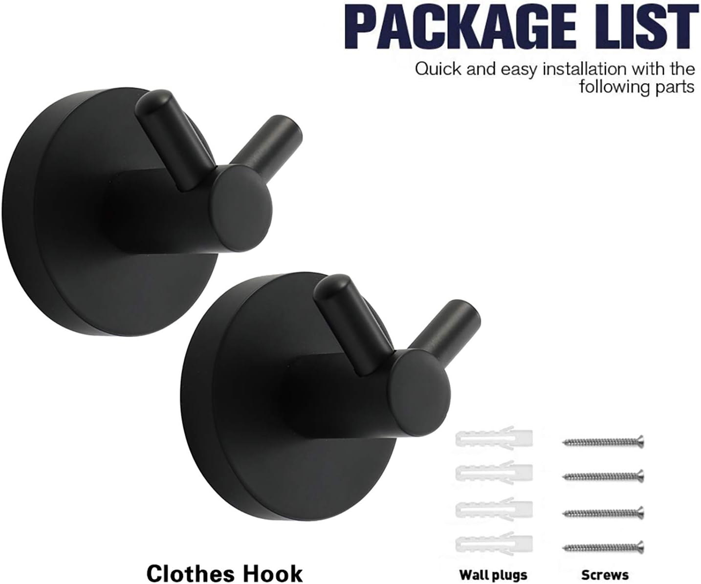 A perfect hardware to get your clutters organized and well arranged to look appealing in the eyes. Heavy duty decorative coat and hat hook it designed to turn any empty walls in your home into a great space saver. It will add charm to your home.Specifications:Product Name: Double Coat HooksStyle: ContemporaryProduct Material: 304 Stainless Steel Color: BlackMounting Type: Wall mountedMolding Process: Gravity castingInstallation Method: Screw installationMaximum Load: 5 kgPackage Includes:Coat Hooks and Mounting AccessoriesHow to Use: Place towels, clothes, hat, rags, etcSuitable: Bathroom, kitchen, bedroom, hotel entryway, laundry room, office etcPrompt:★ Since the size is measured manually, there is a 1-3 mm error. Please refer to the actual product★ The picture is the actual product. However, slight chromatic aberrations may occur due to different lighting and display settingsWe hope you enjoy life!