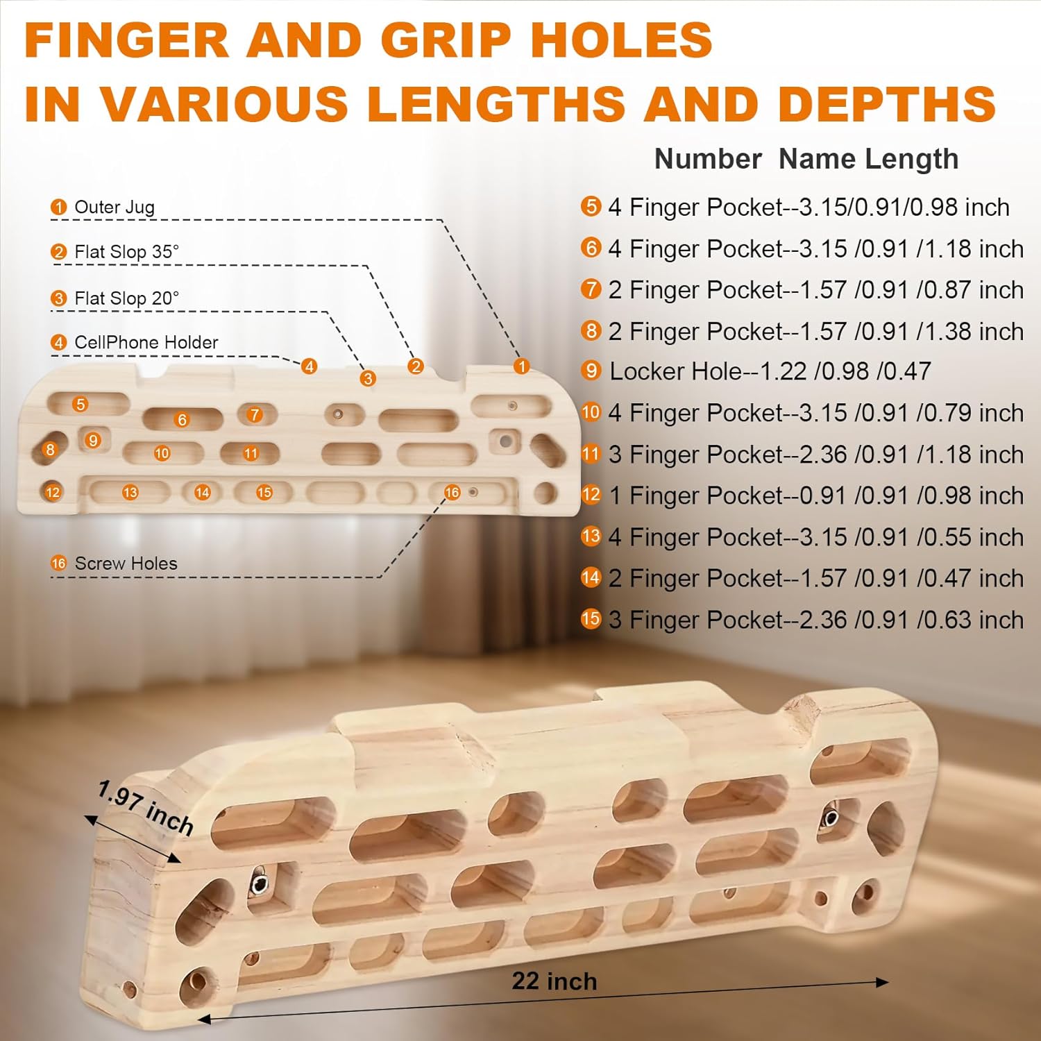 | Material | wooden rock climbing hangboard |