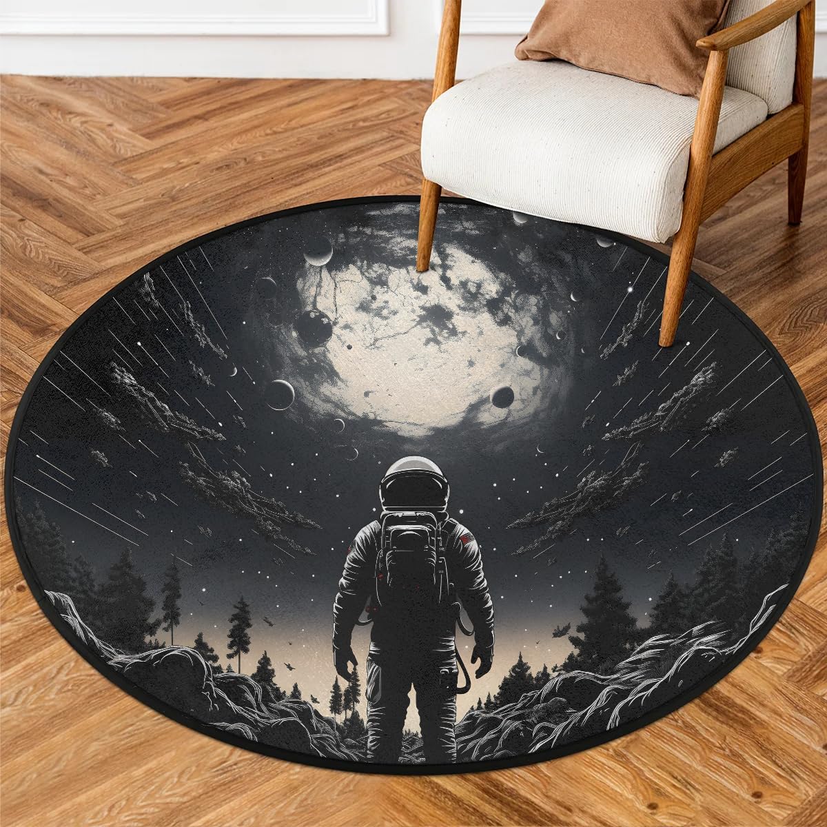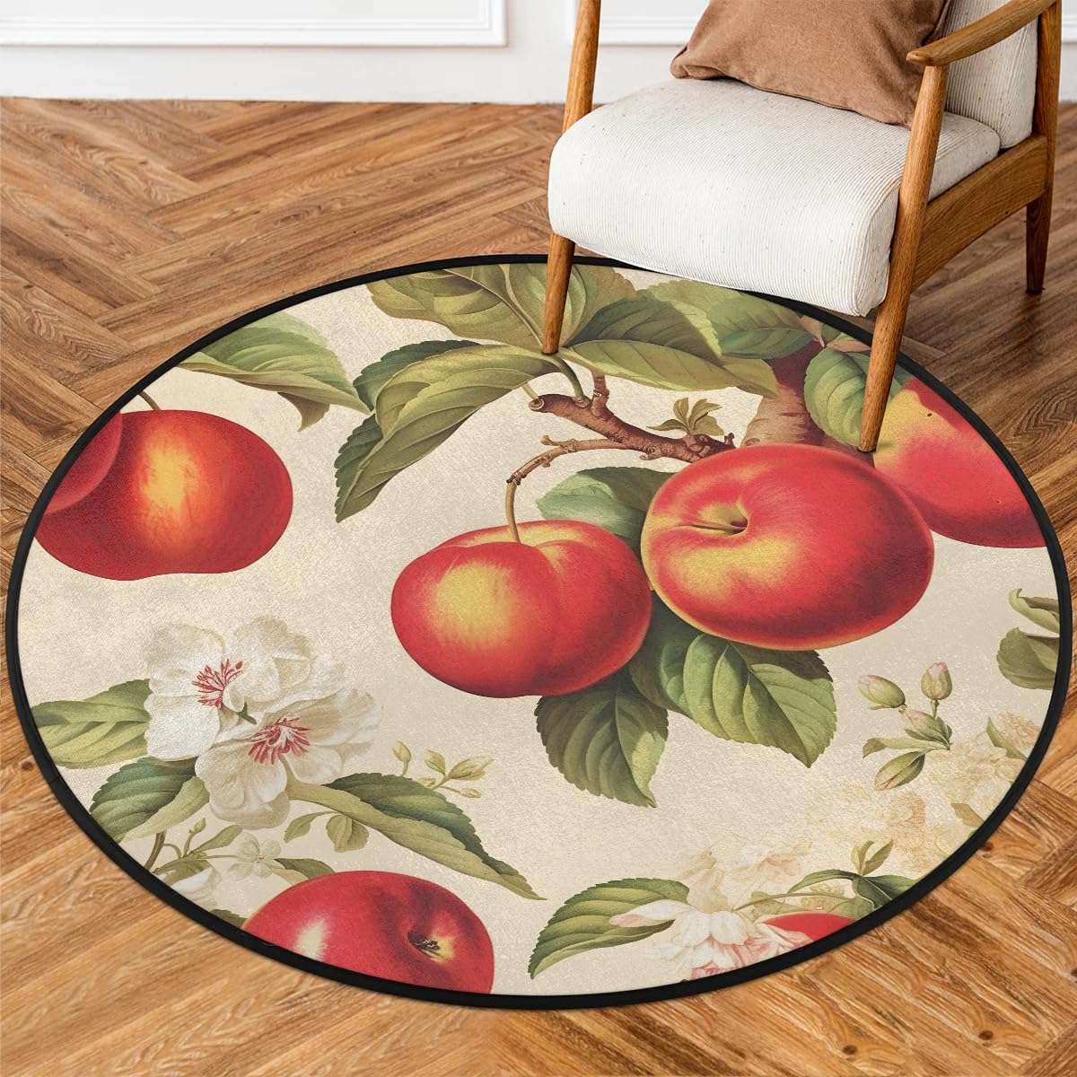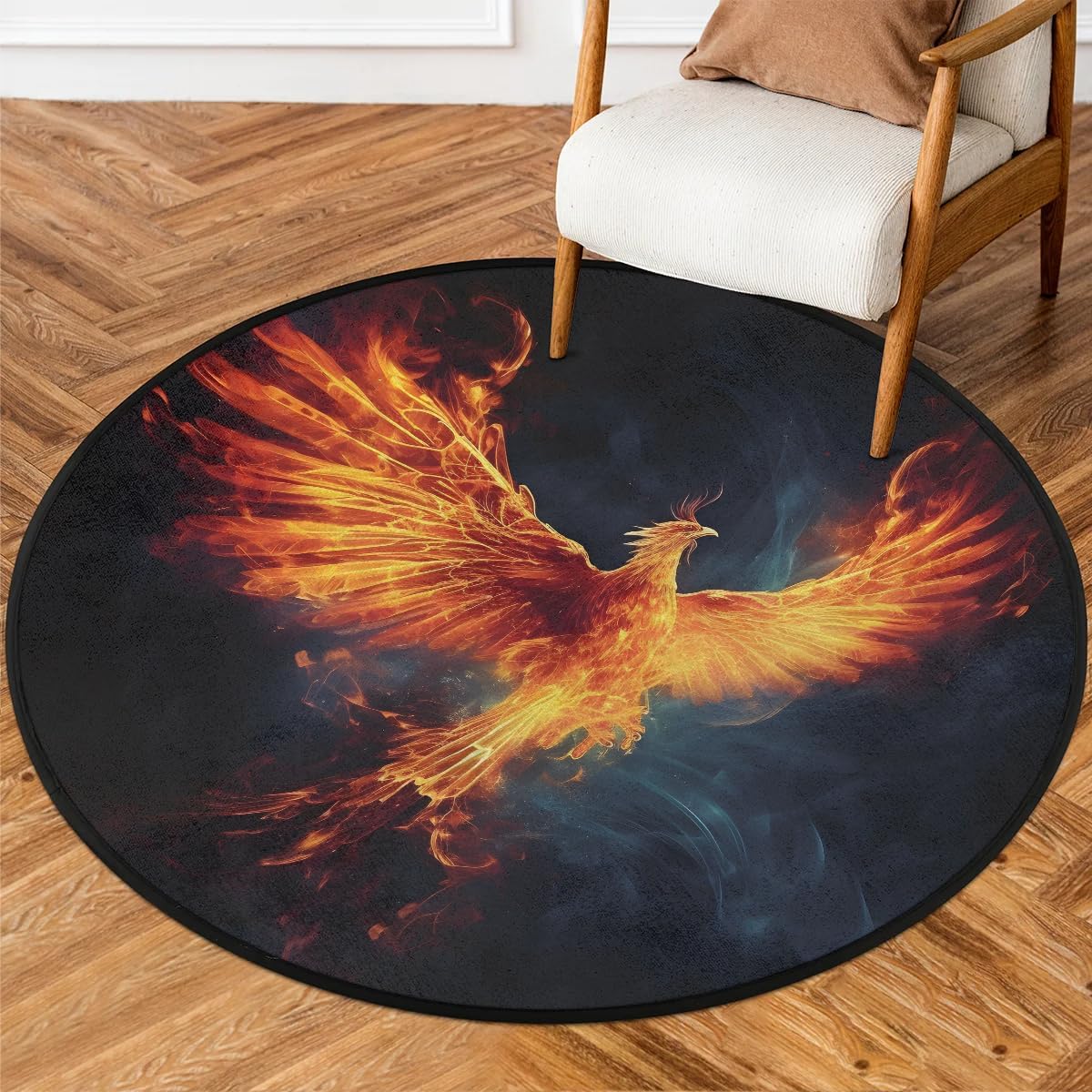 Gumuslen Round Area Rugs, Kitchen Runner Rug, Bedroom Carpet, Dining Room Floor Mats, Bathroom Doormat, Nursery Door matsFeatureMaterial: Measuring 63x63 inches in size (diameter), this round rug is made of polyester fiber, lightweight yet sturdy enough to withstand high traffic. The friendly manufacturing process and high-quality fabric provide a soft and comfortable feel.Non-slip Backing: The rug features a non-slip design on the back to help keep it securely in place. The small anti-slip dots on the bottom enhance friction between the rug and the floor, providing a certain level of slip resistance. The carpet for living room can be safely used on laminate and hardwood floors.Recommended Rooms: Transform your living room, bedroom, kitchen, bathroom, nursery, entrance, office, or dining room with this stunning outdoor patio rugs. This washable nursery rug will elevate any space it is placed in, seamlessly blending in with any decor.Easy Storage: This indoor outdoor rugs are foldable, making it convenient to store or take out. Any creases or resistance from folding will only be temporary.Care Instructions: Simply vacuum the washable rug with a handheld vacuum cleaner to remove dust. For deeper cleaning, wipe with a damp cloth and mild soap. Allow the washable rugs to fully air dry before next use. Do not use bleach.*Tips1. The round carpet may be folded for shipping, so there may be creases upon receipt. These creases will disappear after laying flat for some time.2. Manual measurements may have slight errors, please understand.3. The color of the rug in the pictures may differ from the actual product, due to variations in display and lighting.