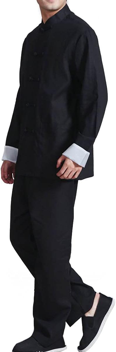 Kung Fu Tai Chi Uniform Frogs Buttons Meditation Suit 【Package Includes】 1 X Mandarin Jacket 1 X Drawstring Pants 【Material】 Made with high quality linen. Breathable and comfortable, to provide ease of movement. 【Feature】 Traditional Kung Fu / Tai Chi Uniform Set. Jacket features mandarion collar and roll-up cuffs. Frog fastening. Pants have elastic waistband and drawstring. 【Occasion】 Great to practice Tai Chi Chuan, Qi Gong and Kung-fu, or just for comfy wear. It is also an ideal gift for men, on birthday, Father's Day or Valentine's Day.