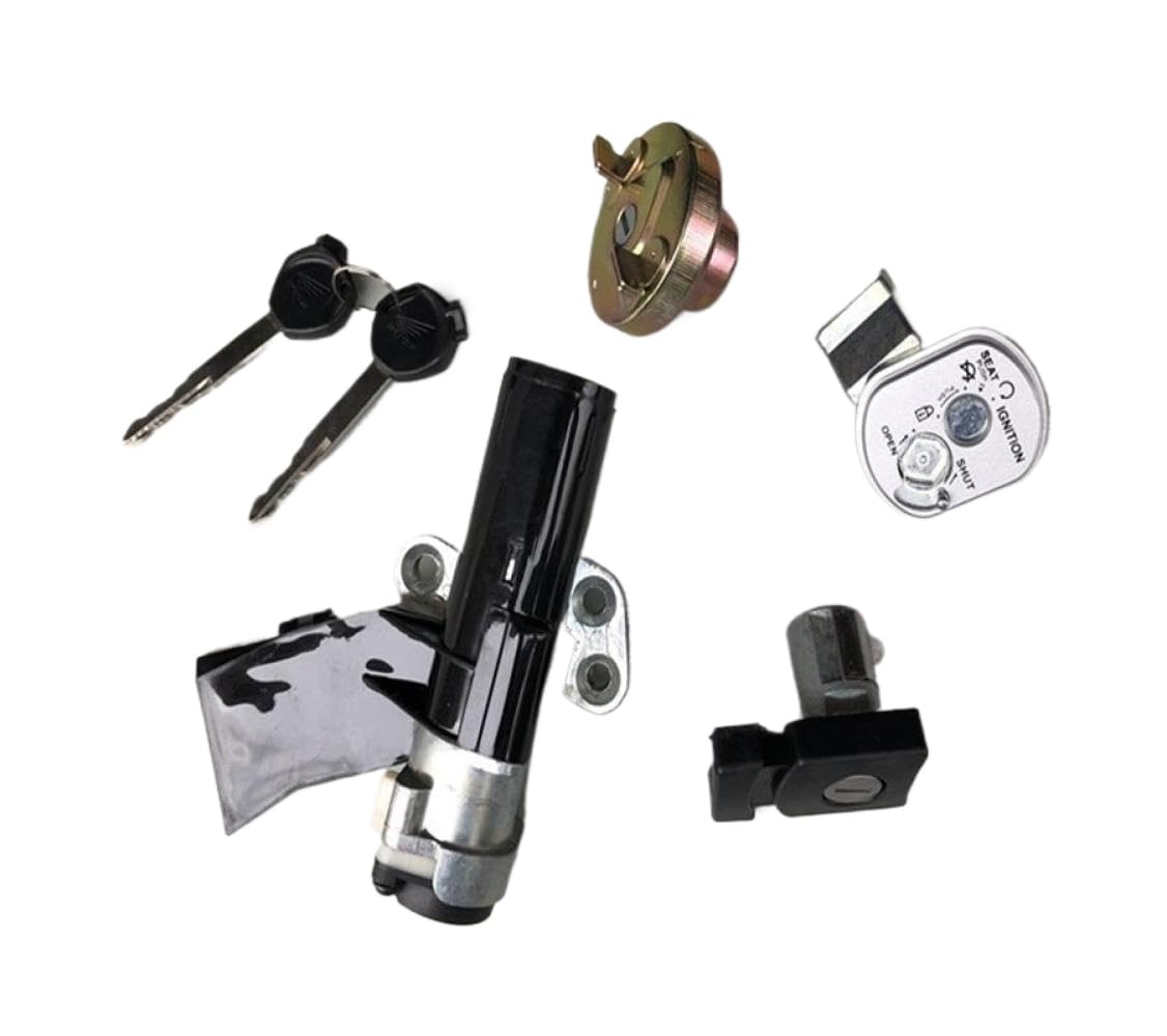 Motorcycle Complete Lock Ignition Key Switch Set Seat Lock For NHX110 SCR110 LEAD 110 GFM 110cc 35010-GFM-K00 This ignition switch set is designed for use with NHX110, SCR110, LEAD 110, and GFM 110cc models.It includes a complete lock assembly with matching , incorporating the ignition switch and seat lock components.The unit replaces the 35010-GFM-K00 and is engineered to integrate into the existing wiring and housing configuration.Installation requires standard hand tools and follows layout.The switch provides for starting the engine and securing the seat compartment.All necessary mounting hardware is included.This set functional compatibility with specified motorcycle models.This item is a compatible alternative.Use of brand identifiers is limited to showing which models it fits.