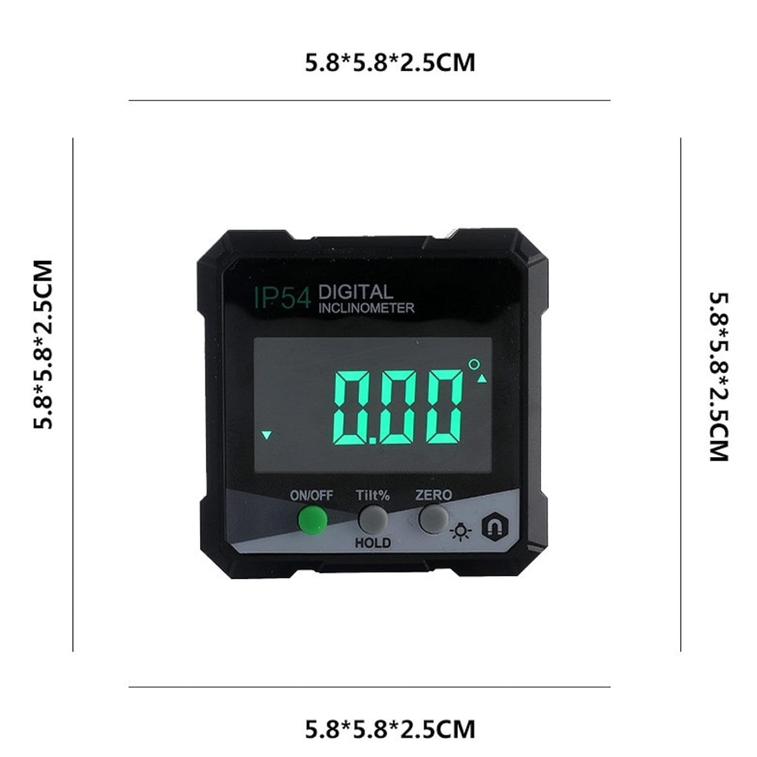 Product description Description: Clear Display : The Inclinometer Is Equipped With An Clear Backlit Digital Display, Allowing You To See The Numbers More Clearly. Backlight Allows You To See Numbers In Dark Environments. Convenient : Digital Inclinometer Can Be Flipped 360 Degrees For Measurement And Can Be Locked At Any Angle For Convenient Measurement. Portable : Digital Level Angle Gauge Meter Is Small In Size And Very Convenient For Daily Use. It Can Be Carried In A Tool Bag And Does Not Take Up Too Much Storage Space. Ip54 Waterproof : Digital Level Angle Gauge Meter Has An Ip54 Waterproof And Dustproof Rating, Which Is Not Easy To Break Or Damage And Has A Long Use Time. Data Retention Function : Digital Angle Gauge Has A Data Retention Function, Which Is More Convenient To Use And Gives You A Better Experience.Specification:Material: AbsMeasuring Range: 4X90 DegreeMeasurement Accuracy: 0.2 DegreePower Supply: 2 Aaa Batteries (Not Included)Size Chart:5.8Cmx5.8Cmx2.5Cm/2.28Inchx2.28Inchx0.98InchPackage Includes:1 InclinometerNote:Please Allow Slightly Errors Due To Manual Measurement And Different Monitors. Manufacturer Contact Information Customer Care : (+91-9355854563), elyssiondesign2nd@gmail.com