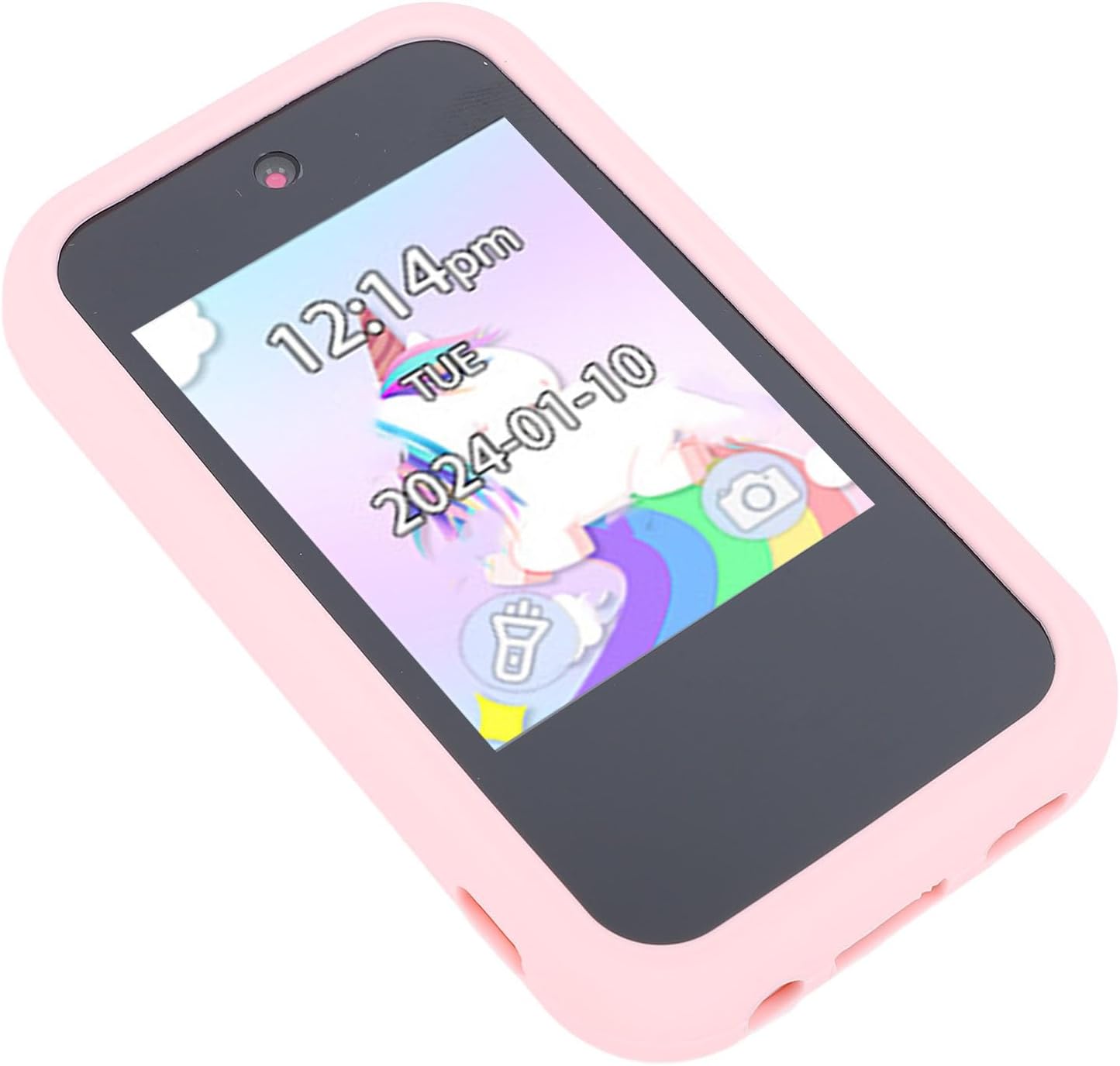 1. Interactive HD Touchscreen: The toddler play phone camera features a HD touchscreen that gives children the authentic experience of using a real smartphone. Although it doesn't require a SIM card (and therefore cannot make calls or send texts), it provides endless entertainment, including a built in flashlight that adds to the fun! 2. Educational Learning Games: This kids camera cell phone is not just for fun, it also includes 8 engaging educational games specifically designed for young children. These games enhance cognitive skills, brain activity, and make learning interactive and enjoyable. It's the good tool for early education that keeps kids entertained while they learn. 3. Double Camera: The smartphone toy camera comes equipped with a 10MP camera and 1080P video recording, allowing kids to catch their favorite moments. With double camera functionality for front and rear photos, children can express their creativity by adding popular photo stickers, enhancing their photos, and encouraging imaginative play. 4. Rugged And Safe Design: This kids toys cell phone features a robust silicone shell that is designed to withstand accidental drops, making it suitable for young kids. The shock absorbent protective case ensures durability, and the tempered glass screen protector adds an extra layer of safety, ensuring that the phone remains functional and intact during various activities. 5. Good Gift: This kids smart phone toy is a good gift choice for young girls, especially for birthdays, Easter, Xmas, or any special situations. Its pocket sized design makes it portable, giving kids their very own smart phone experience without the worries of a real device. Spec: Item Type: Kids Phone Camera Toy Display: 2.8 Inches Material: ABS, Silicone Battery: Li Battery 600MAh (Included) Maximum Support Memory Card: 32G (Not Included) Weight: Approx. 164.00g / 5.78oz How to Use: Follow the instructions in the manual. packing list: 1 x Camera 1 x Lanyard 1 x USB Cable 1 x Manual