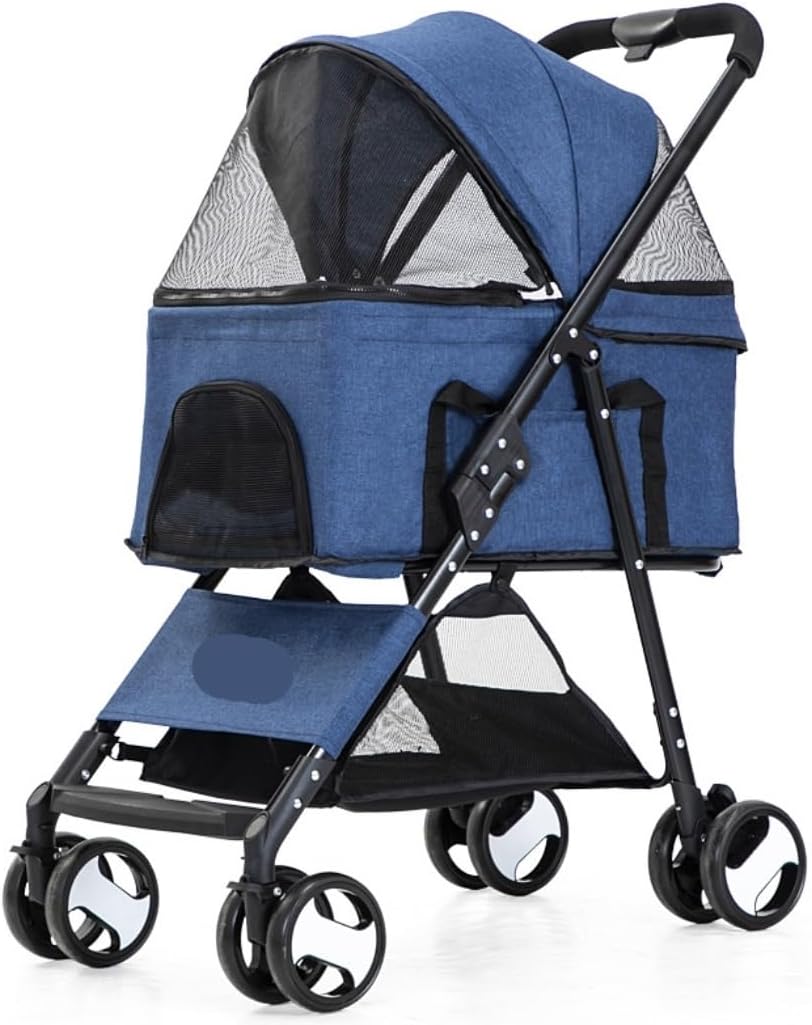 Great for Travel: Ideal for smaller or older pets that can't walk long distances.Product name: Dog Stroller/ Cat Stroller/Pet Stroller Net weight of car body: 6.5KGLoad-bearing range: Recommended within 20kg/44lbsExpanded size: 100*38*58 CMFolded size: 80*50*30 CMBox size: 44*19.5*75CM/17*7.6*29.5inchPacking weight: 7.8KGDistinctive features: The car bag is detachable and can be folded to close the car with one click.Tire features: Four-wheel universalPacking List: 1 * Pet Stroller Note: Only pet strollers are sold, pets and other items are not includedBreathable & Good View: Which not only keeps the air circulating, but also allows the light to shine in, making the car breathable and bright, giving the pet a wider field of vision.Smooth Ride, All-Terrain: Durable tires and a stable frame make this stroller easy to push on various surfaces, providing a comfortable journey for your pet.
