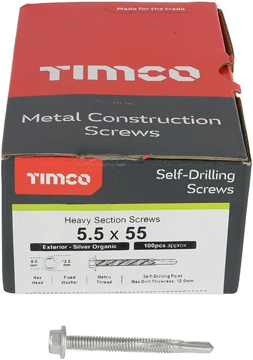 Self-drilling screws for heavy section 12mm steel. They are plated with Silver Ruspert which is a reliable coating able to withstand over 1000 hours of salt spray testing. Specifically designed and manufactured to meet all the recognised industry standards and performance criteria.