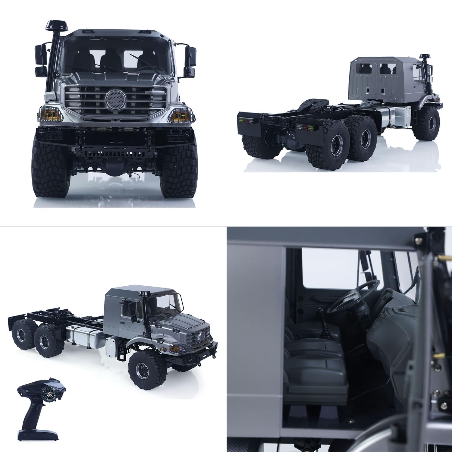 #JDM-218A 1/14 6X6 Remote Control Tractor Truck RC Model Vehicle 2Speed Gearbox 1060 Brushed 540 Motor No Battery #Specification: Item Condition: New, Painted and Assembled. Material: Plastic, Metal Scale: 1/14 Color: Silver Size: 674*227*242MM/26.5*8.9*9.5Inches Net Weight: About 9KG ESC: 1060 Brushed ESC Motor: 540 35T Brushed Motor Steering Servo: S15 Differential Lock Servo: S15 Transmission: JDM-135, 2 Speed Axle: 6X6 Axles come with Differential Locks Vehicle Battery: 3S 11.1V Li-Po (Not Included) Battery Compartment Size: 142*45*40MM/5.6*1.8*1.6Inches ID: JDM-218A-PNP-S #The Package Includes: 1/14 RC Tractor Truck Model Motor Servo ESC Remote Controller and Receiver #The Package Does Not Include: Light System Sound System Battery(Recommand 11.1V 3S LI-PO) Charger #If you have any questions or are not sure whether it is the correct item you want, pls feel free to contact me before purchasing.