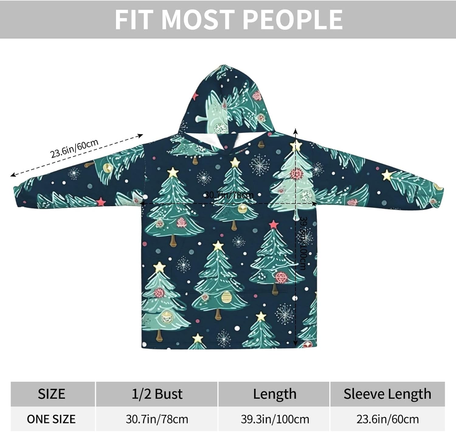 Experience The Ultimate In Comfort And Style With Our Cozy Oversized Blanket Hoodie. Crafted From 320g And 280g Flannel, This One-Size-Fits-All Wearable Blanket Hoodie Is Designed To Provide Maximum Warmth And Softness. With A 1/2 Bust Of 30.7in/78cm, Length Of 39.3in/100cm, And Sleeve Length Of 23.5in/60cm, It Ensures A Fit For All Adults, Making It A Versatile And Practical Choice For Everyone.\r\nThe Long-Sleeved, Hooded Design Not Only Adds To The Aesthetic Appeal But Also Enhances The Overall Warmth, Making It For Those Chilly Winter Nights. The Large Front Pocket Is For Storing Your Phone, Snacks, Or Simply Warming Your Hands, Adding To The Convenience And Functionality Of This Cozy Piece.\r\nThis Blanket Hoodie Is Not Just For The Winter; It'S Suitable For All Seasons, Whether You'Re Relaxing At Home, Traveling, Or Enjoying A Movie Night. Its Lightweight And Machine-Washable Fabric Make It Easy To Care For, Ensuring It Stays Fresh And Clean For Everyday Use.\r\nMake A Statement With This Stylish And Functional Blanket Hoodie, And Give The Gift Of Warmth And Comfort. For Christmas, Birthdays, And Other Special Occasions, It'S A Thoughtful And Practical Present That Will Be Cherished By Friends, Family, And Loved Ones. Trust Us To Provide The Blend Of Warmth, Comfort, And Style With Our Cozy Oversized Blanket Hoodie.