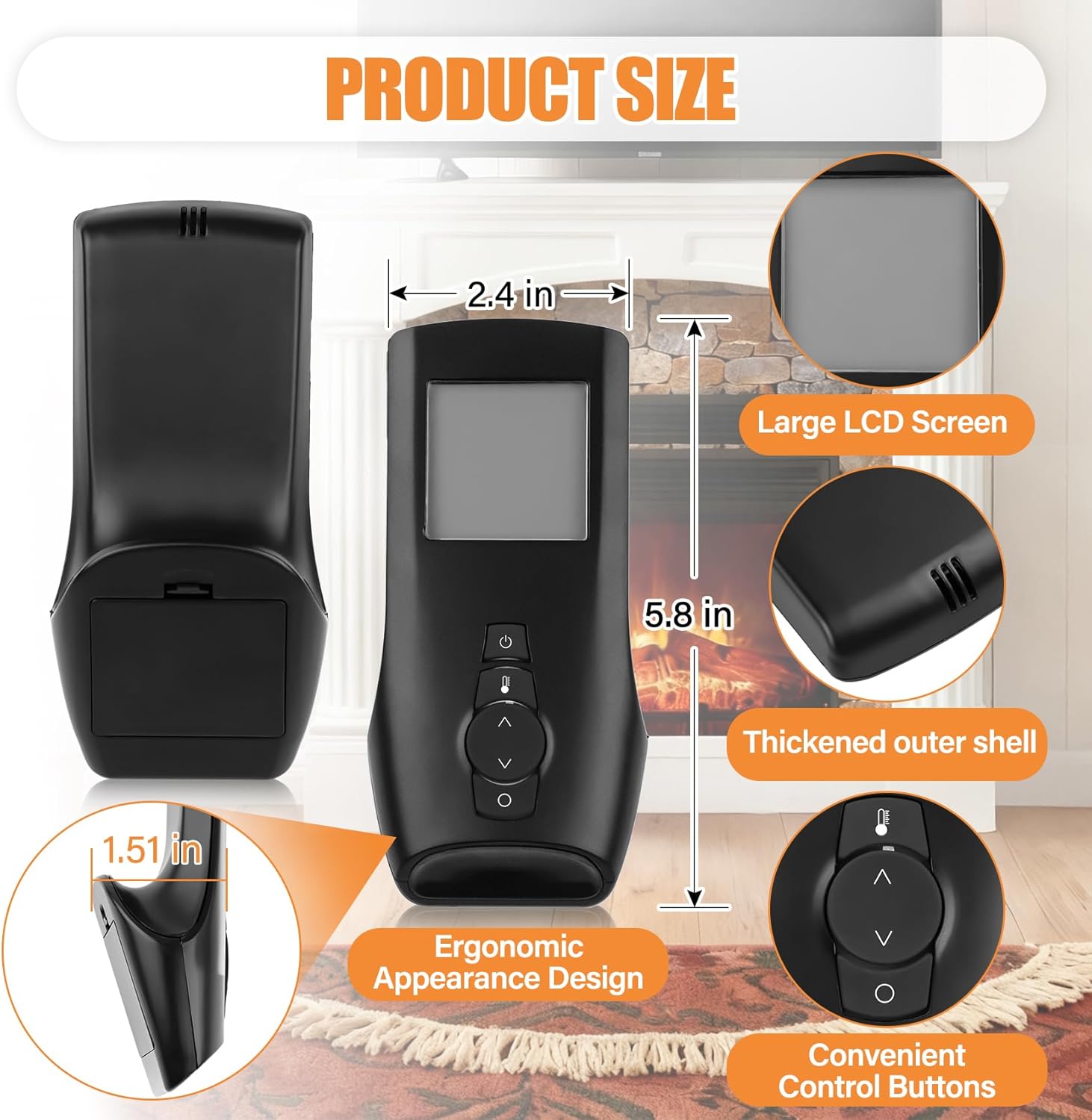 | Additional Features | Fireplace remote control transmitter |
