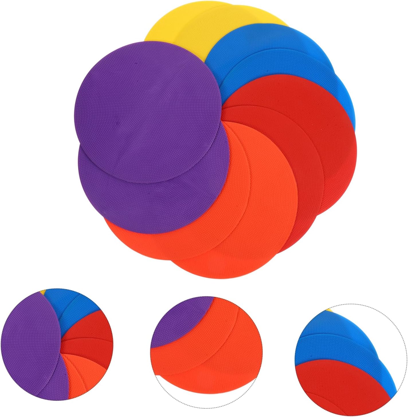 Package Include 10 x Training Sign Discs Characteristics -Size:22.70X22.70X0.20cm/8.92X8.92X0.08in sign disc for sports -Material:PVC floor marker for soccer training -Color:Assorted color soccer markers -Colorful design with detail makes them beautiful and practical. Marker ability is strong sports markers. -Made of PVC materials, which can be durable and safe for a long time use soccer sign disc. - for setting up on-site boundaries and setting up training courses to increase player flexibility football training tools. -With bright color design, making them useful for a variety of games in gym class or agility drills when practicing soccer, hockey, basketball, and other sports playground training sign for soccer. - toughness, not easy to break, can be used repeatedly. Aid for football practice exercising equipment for soccer.Goods Informationfootball training discs This Football Training Sign Disc features stability, excellent endurance, strong drop resistance and bright color design that delivers superior visual acuity to help you your footwork, flexibility.football training sign Made of PVC material for long term to use
