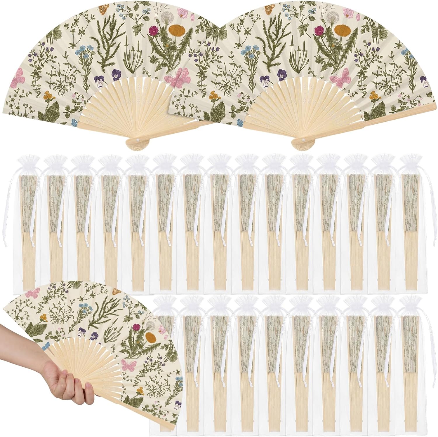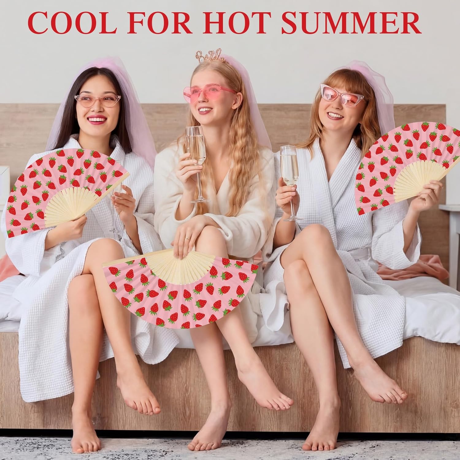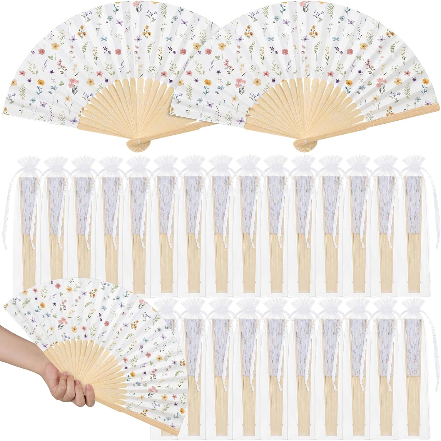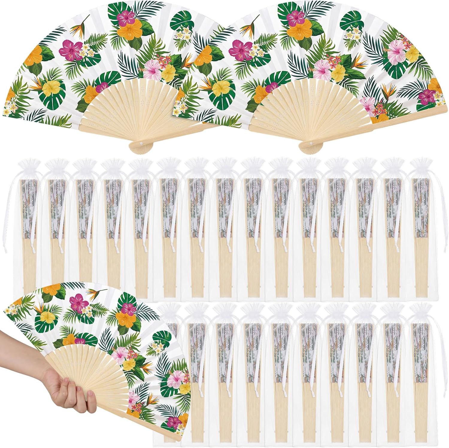 Features: Featuring the cute pink strawberry pattern on durable bamboo and paper, these folding fans are ideal for cooling guests and adding charm as wedding, bridal shower, baby shower or garden party favors. Each fan unfolds to 15 x 8.3 inches for comfortable use and folds compactly for easy carrying. Ideal as bridal fans, decorative props, photo accessories, or functional favors, this set combines style and practicality for events ranging from baby shower to themed parties. Specifications: Material: bamboo, paper Color: pink, red Size: Folding hand fans: about 15 x 8.3 inches/ 38 x 21 cm unfolded Organza bags: 10.2 x 2.4 inches/ 26 x 6 cm Package includes: 25 x Folding hand fans 25 x Organza bags Notes: Manual measurement, please allow slight errors on size. The color may exist a slight difference due to different screen displays