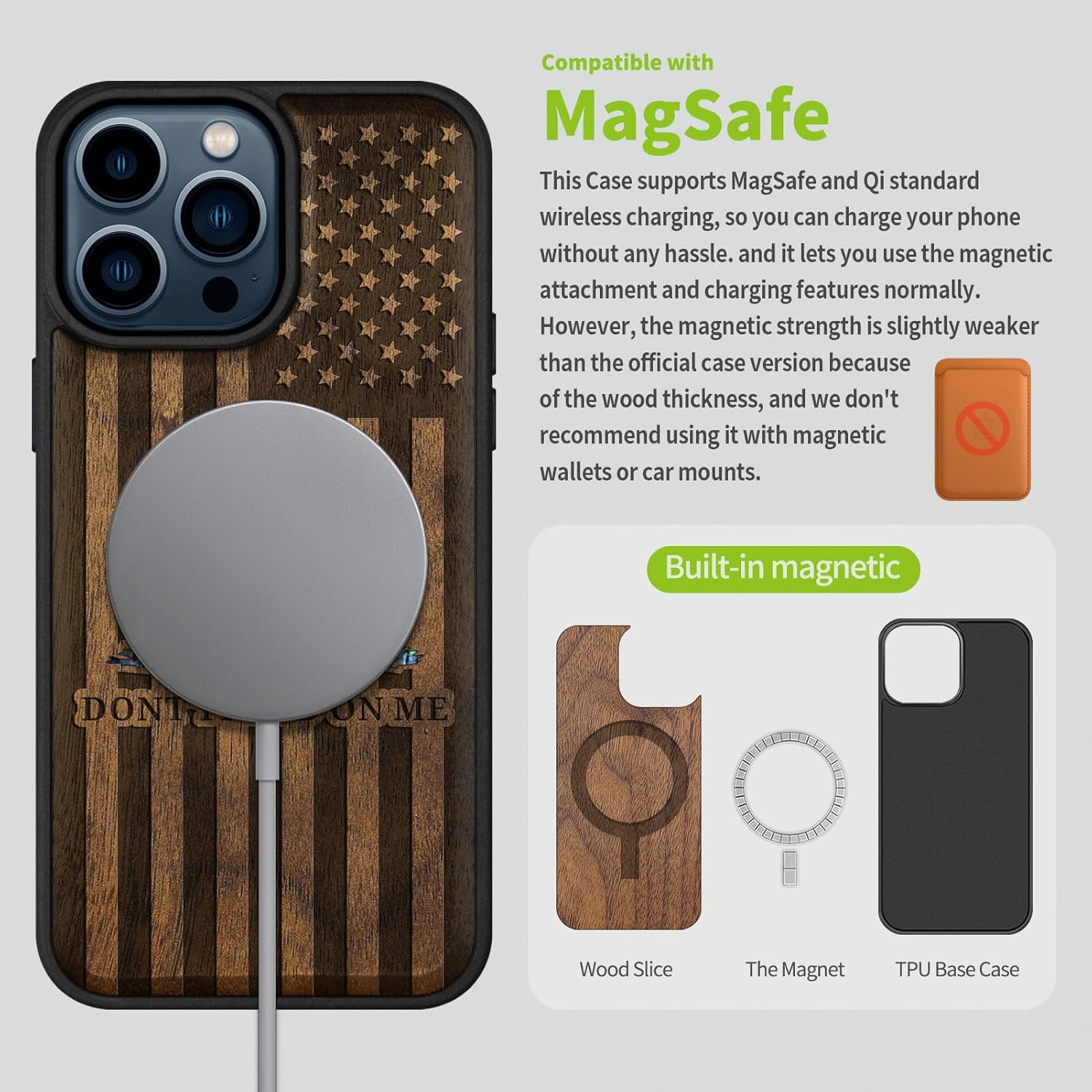 | Additional Features | Natural solid wood back panel and laser engraving, The unique solid wood keeps the palm dry and prevents fingerprints from sticking to the surface of the case, keeping it clean and elegant |