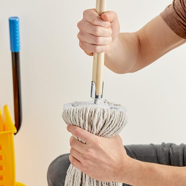 Elevate your cleaning routine with this professional-grade 60-inch wooden mop handle from Lavex. Featuring a robust metal threaded connector, this handle ensures quick and secure attachment to compatible screw-on mop heads. The sturdy wooden construction delivers lasting durability for demanding commercial environments, while the generous 60-inch length provides extended reach for efficient cleaning of large areas. With a 1-inch diameter for comfortable grip and weighing just 1 pound, this handle enables effortless maneuverability during extended cleaning sessions. Perfect for restaurants, hotels, offices, and other commercial spaces, this versatile mop handle combines practicality with dependable performance. The brown wooden finish maintains a professional appearance while standing up to daily use. Note: Compatible mop head sold separately.