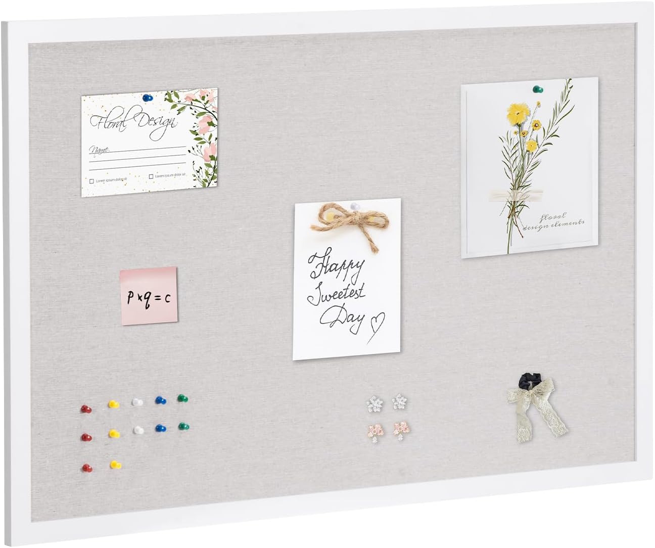 Item Model Number: CCB-2436 Panel: Corkboard Wall Mounting: Horizontal/Vertical Color: Transparent Tray: None Hooks: None Main Materials: Aluminum Profile + PET + Cork + Sugarcane Board Panel Usable Size: 33.1 × 21.3 in / 840 × 540 mm Product Dimensions: 35.4 × 23.6 × 1.3 in / 900 × 600 × 33 mm Net Weight: 11.33 lbs / 5.14 kg
