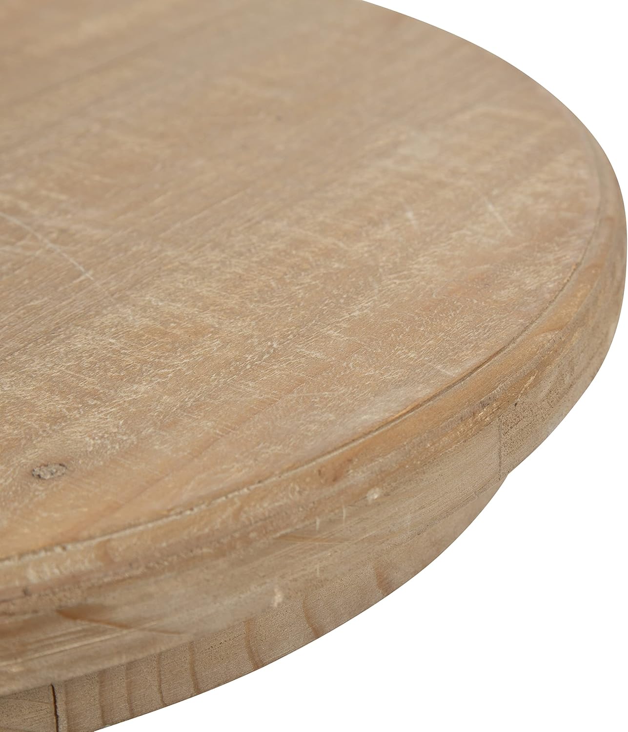 Add the comfort of farmhouse style to your home with the Linsley, an end table that exudes rustic simplicity. The Linsley side table was inspired by the tasteful forms and aesthetics of rustic farmhouse design, showcasing an elegant curvature within the base with a round tabletop. This beautiful end table was crafted with robust wood and a two-tone rustic brown and white finish to elevate its vintage style. It's perfect for showcasing your style while providing a functional area for storing and displaying accessories and household items. This accent table has a 16-inch diameter and is 26 inches tall, making it a fantastic addition to your couch, bed, armchair, vanity, or entryway. The pads on the bottom of the feet prevent the Linsley from damaging your hard surfaces. Use the robust tabletop to showcase your prized collection of keepsakes, succulents, or decadent candles. It also works as a place for your makeup, media remotes, keys, and household necessities. Assembly for the Linsley table takes only seconds with a simple 4-step process.