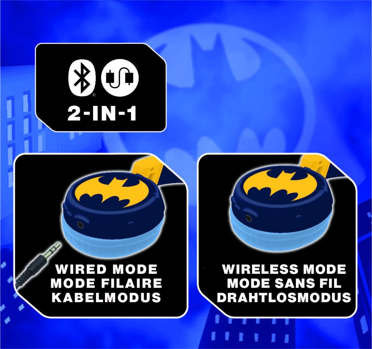 Lexibook Batman 2-in-1 Bluetooth and Wired Headset with Mic and Control Button, Long-Life Rechargeable Battery HPBT010BAT