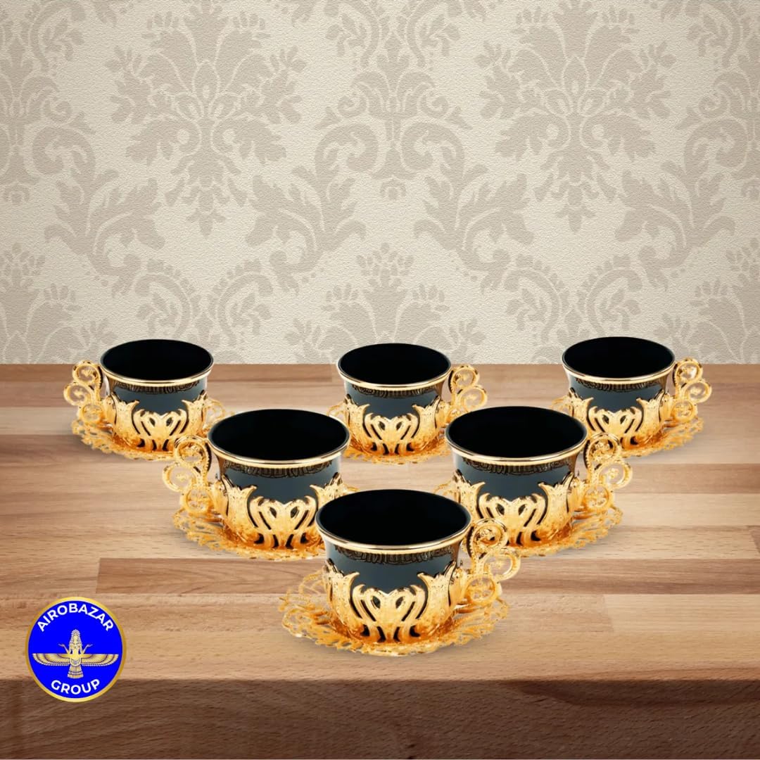 Original 12-piece Turkish, Greek and Arabian coffee cup and saucer set, presented with metal stand and reflects elegance in every detail with its special design. Porcelain cups and saucers have both a durable and aesthetic structure thanks to their quality material. This set, which is a perfect choice for tea, coffee invitations or special meetings, reveals your elegance while hosting your guests. It is an ideal gift option for women, men or all adults; It brings together classic and modern style in every presentation.