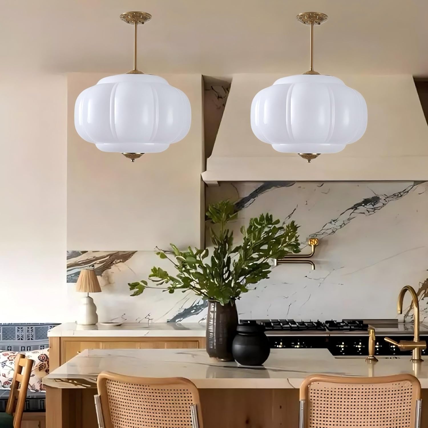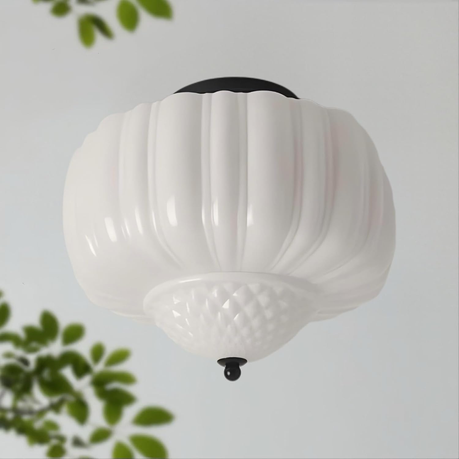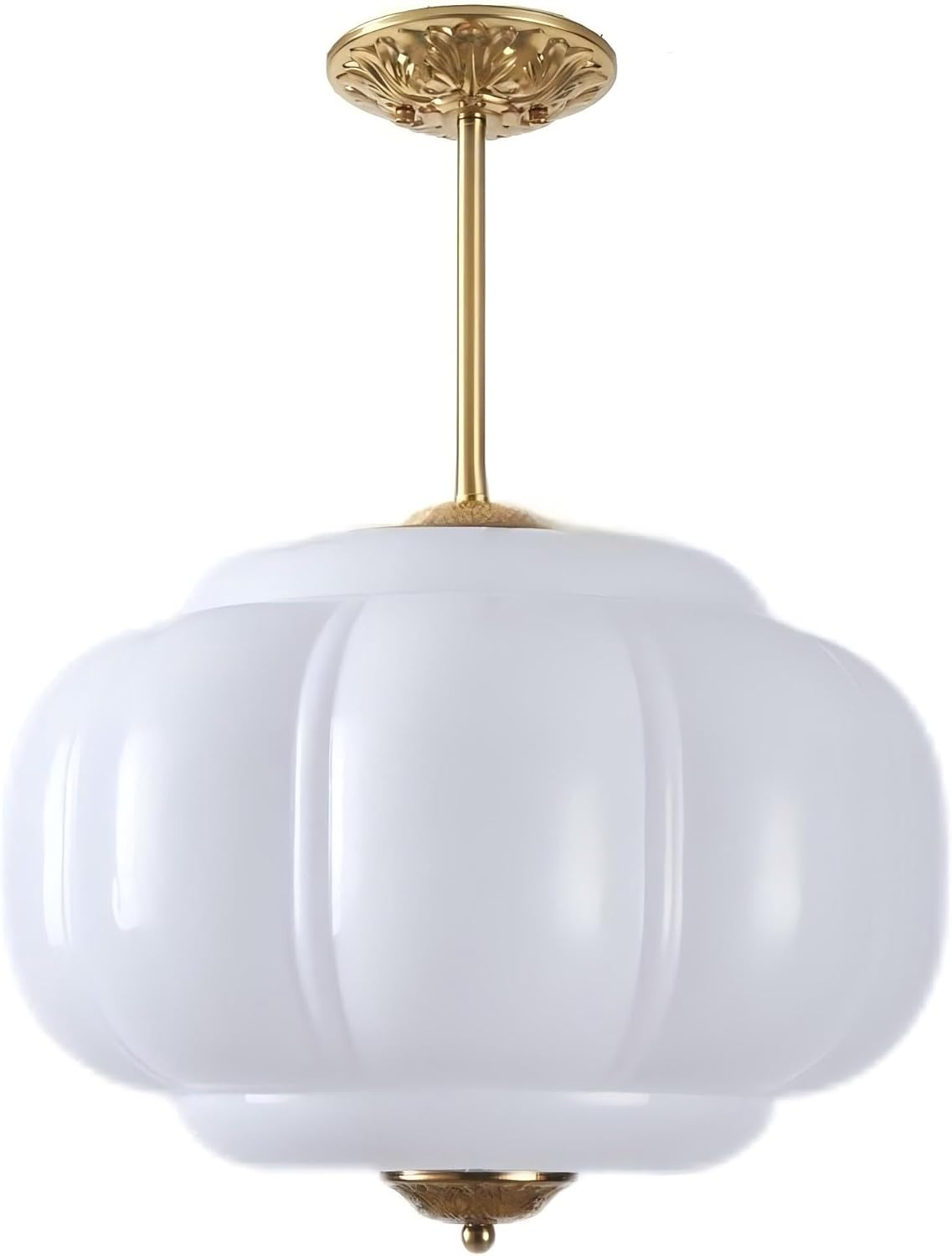 Elevate your interior design with this stunning semi-flush mount ceiling light that seamlessly blends vintage charm with modern aesthetics. The distinctive glass shade, measuring 15 inches in diameter and 12.2 inches in height, features an elegant ribbed design that creates beautiful light patterns when illuminated. The fixture comes with adjustable hanging rods (7.9 inches each) allowing you to customize the perfect height for your space. Adorned with sophisticated brass-finished hardware and decorative ceiling mount, this light fixture makes a striking statement in any room. Perfect for kitchens, hallways, bedrooms, dining rooms, or entryways, this versatile lighting solution provides both style and functionality. The substantial size ensures adequate illumination while the classic design adds architectural interest to your ceiling. The milk glass construction diffuses light beautifully, creating a warm and inviting atmosphere in your space. This ZeniLife fixture combines quality craftsmanship with timeless design elements to enhance your home's décor.