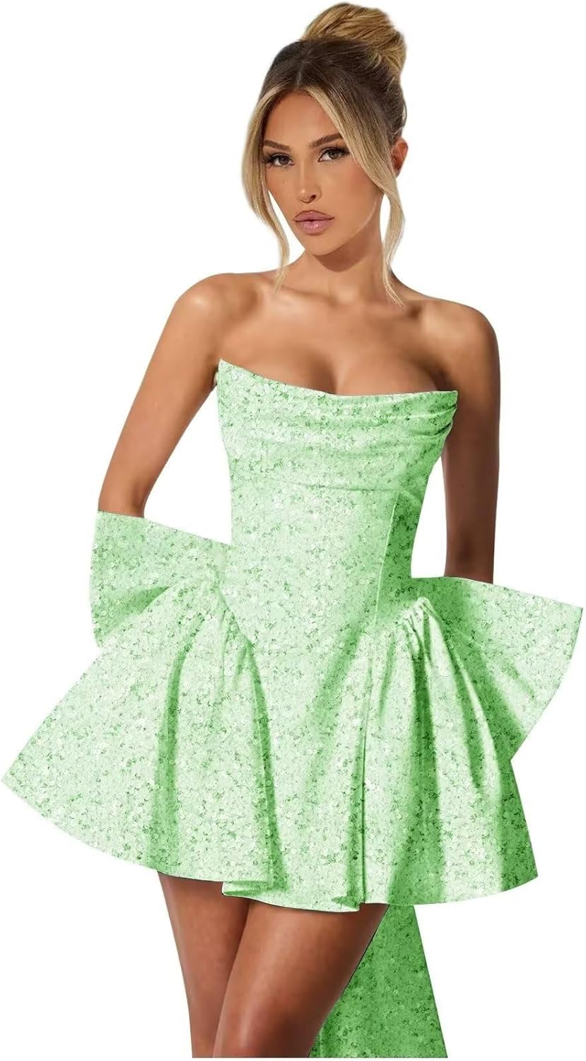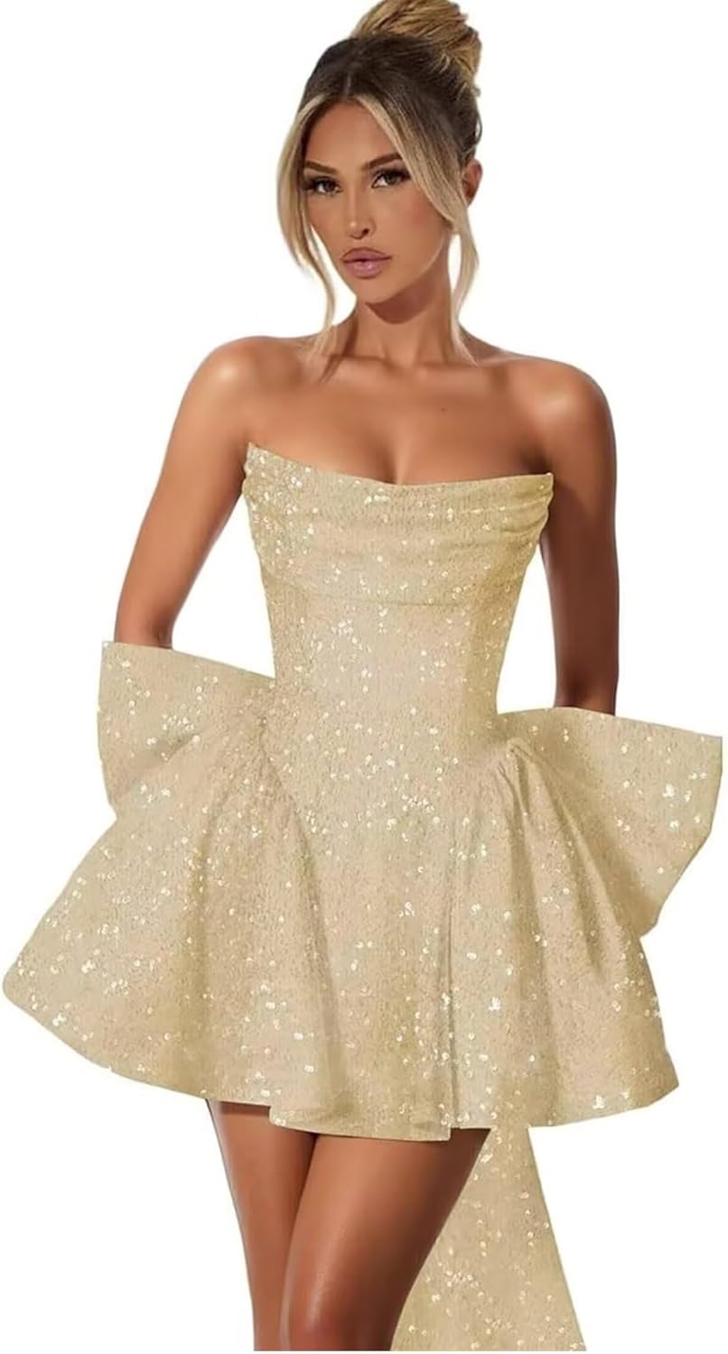 | Fabric Type | Quality Sparkly Sequins hoco prom dress with long bow short 2026, Handmade 100% |