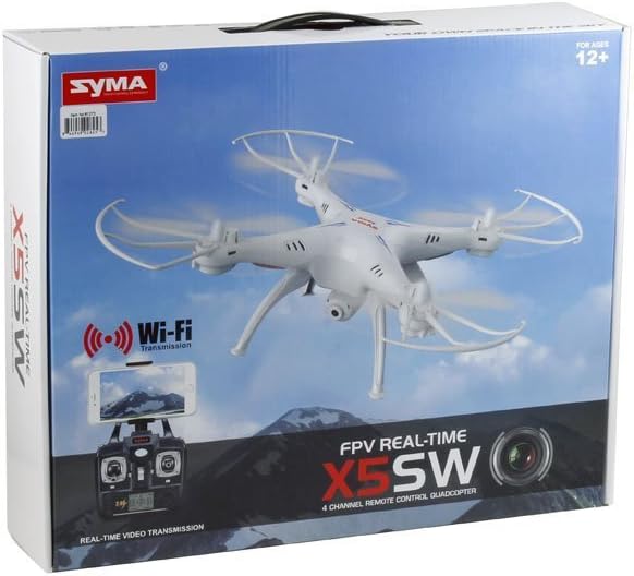 Colorful Flashing Lights Colorful flashing lights make it fun to play during the day time or night both indoor or outdoor Blade Protector Comes equipped with a blade protector for safe flights. Protect your blades if there are any minor crashes. Product Size Body Length: 12.4 inches / 315 mm Body Width: 12.4 inches / 315 mm Body Height: 4.1 inches / 105 mm Description: Channel: 4CH with 6 Axis State of Assembly: Ready-To-Fly (RTF) Controller Battery: 4 AA batteries(not include) Controller Mode: MODE2 (left throttle hand) Remote Distance: About 50 Meters Shatter Resistant Charging Voltage: 3.7V 500mAh Lithium battery Charging Time: About 120 Minutes (USB charging) Product Dimensions: 12.4 x 12.4 x 4.1 in (315 x 315x 105mm) Support phone type: IOS and Android Includes: 1 x SYMA X5SW Quadcopter 1 x 2.4G Transmitter 1 x 3.7V 500mAh Li-poly Battery 1 x 0.3MP wifi Camera 4 x landing gear 2 x Spare Blades 1 x USB Charger 1 x Protecting frame 4 x Screws 1 x Screwdriver 1 x Smart Phone Clipper 1 x Manual
