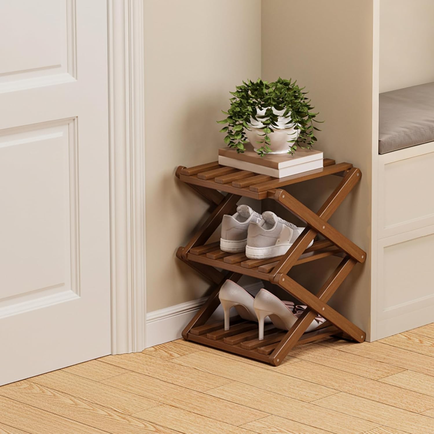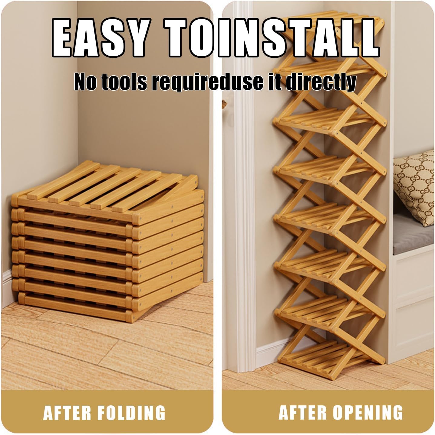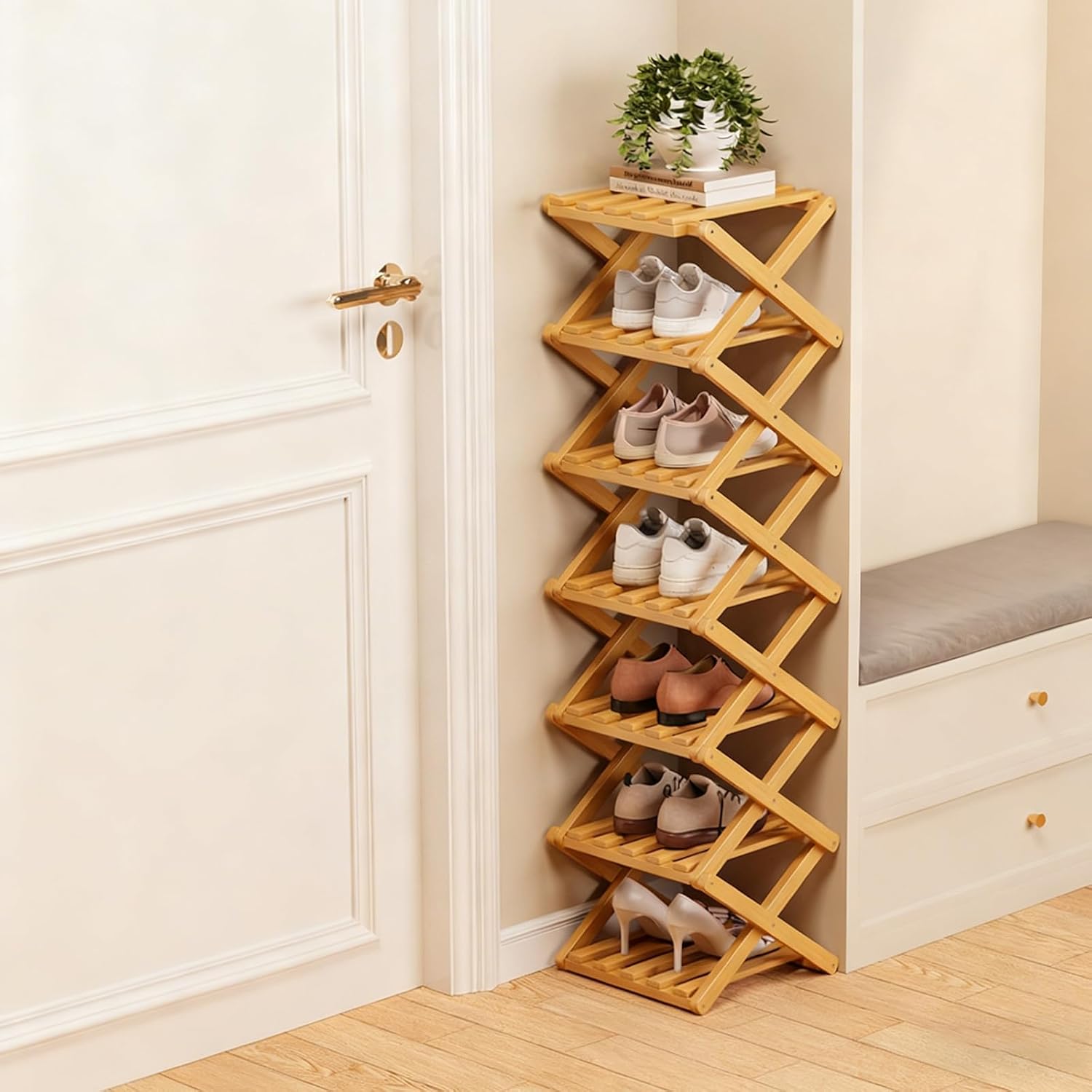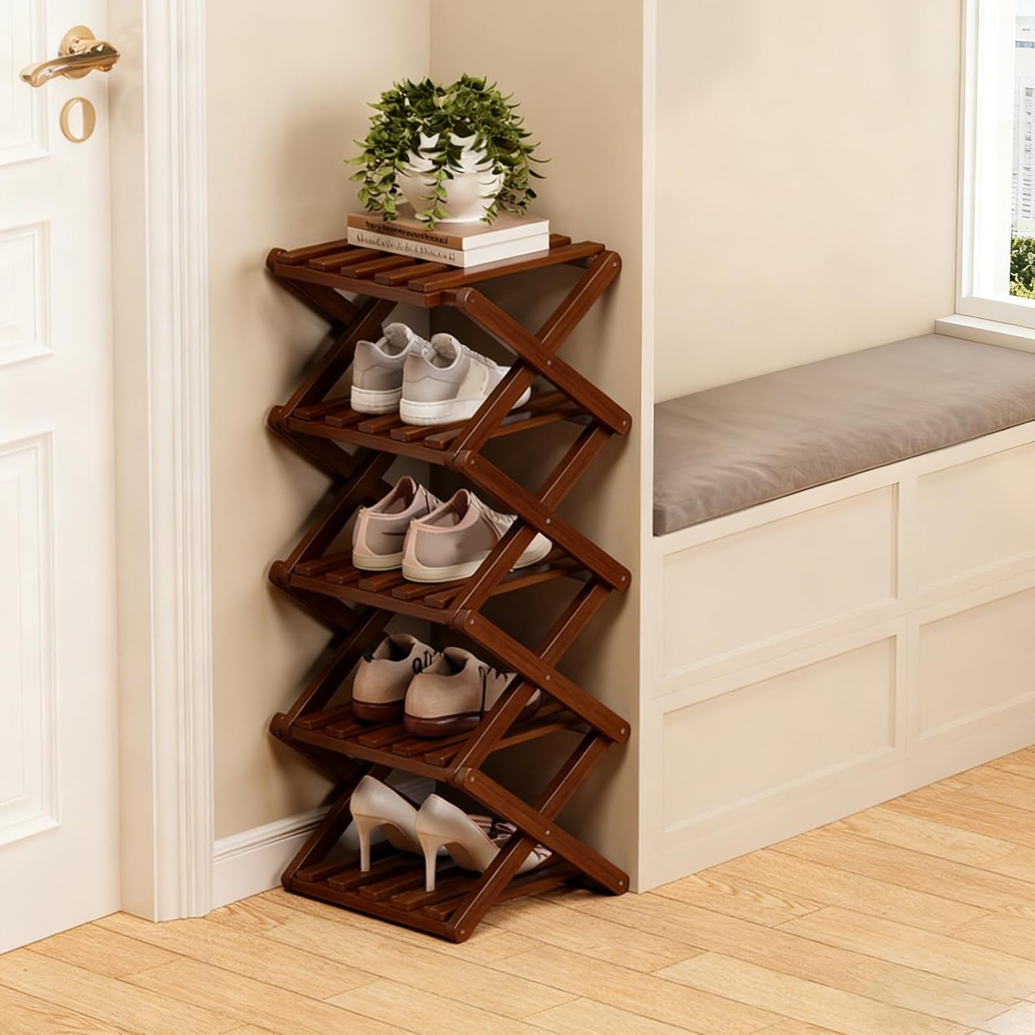 • 【Ready to Use in Seconds】This foldable bamboo shoe rack features a smart accordion design that opens and locks into place instantly — no tools, screws, or assembly needed for fast and stress-free setup.