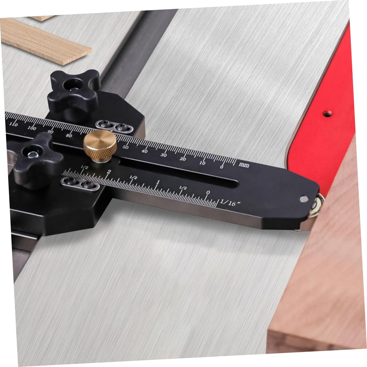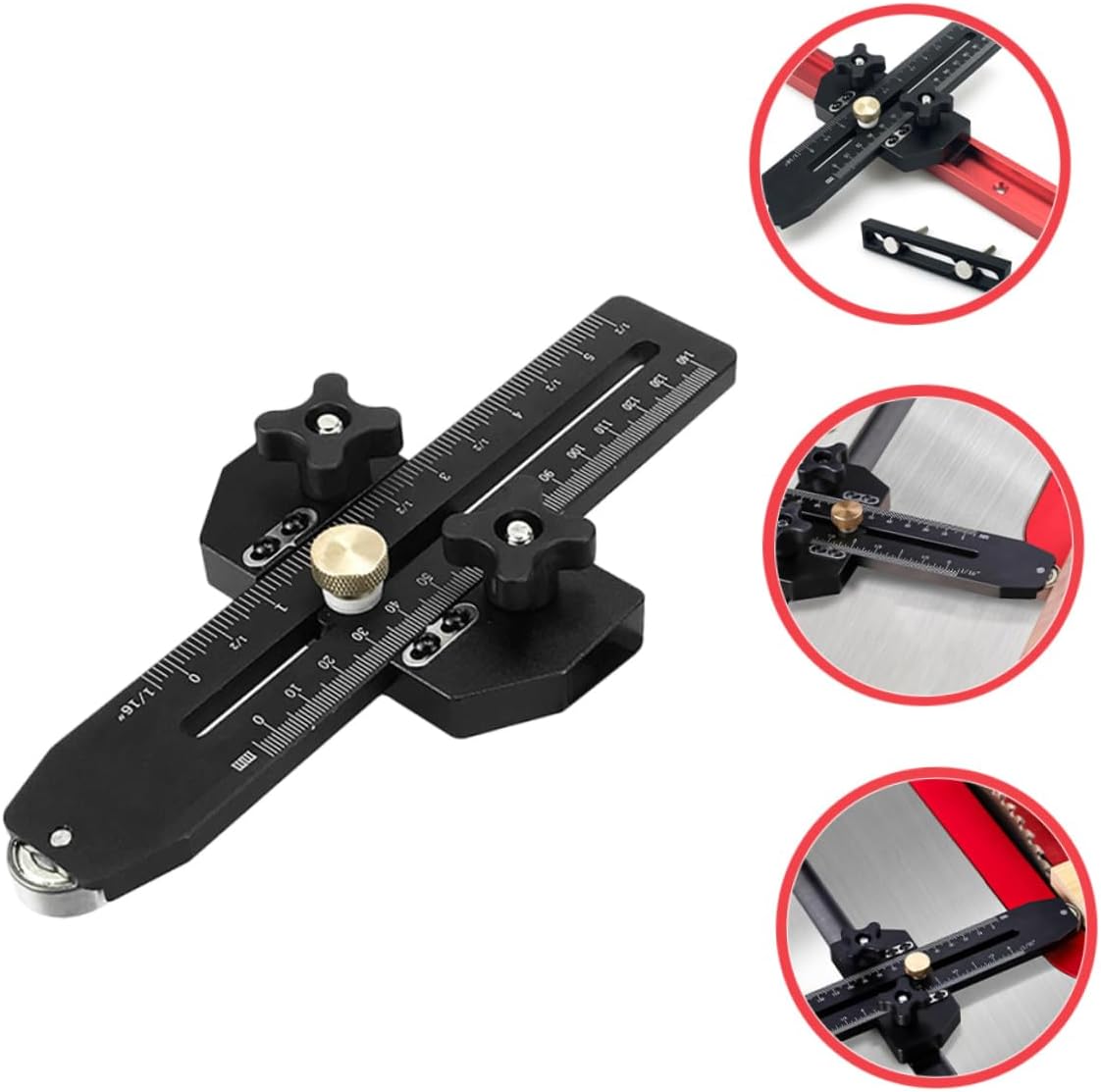 Package List 1 set saw positioner clamp (1pcs Positioner, 1pcs mounting base , 2pcs mounting screw , 2pcs adjusting wrench ) Features -Easy and accurate setup: features clear measurement markings and easy to grip knobs for secure locking. scales in millimeters and inches allow for quick setup and adjustment for precise repetitive cuts making repetitive narrow strip cuts -Sturdy construction: made of anodized aluminum alloy with a rigid metal structure, it firmly secures the workpiece, eliminating and ensuring cutting while preventing finger injuries band saw jig -Color:Black thin rip jig -Material:Aluminum Alloy router band saw jig -Broad compatibility: this saw guide comes with two sizes of mounting sliders, compatible with most standard Saw, planers, and band Saw works with saw -Size:23.00X9.90X2.20cm/9.04X3.89X0.86in thin strip cuts saw jig -Precision and safety: ensures precise cutting of thin and narrow boards, improving work efficiency and providing a safe environment extended thin rip jig sawGoods Informationwoodworking jigs This extended version thin rip jig is for making repetitive narrow strip cuts.woodworking tools saw innovative design ensures precise and consistent results, enhancing the of your woodworking projects. saw guide The jig is easy to use and adjust, making it suitable for various cutting applications and improving your overall efficiency