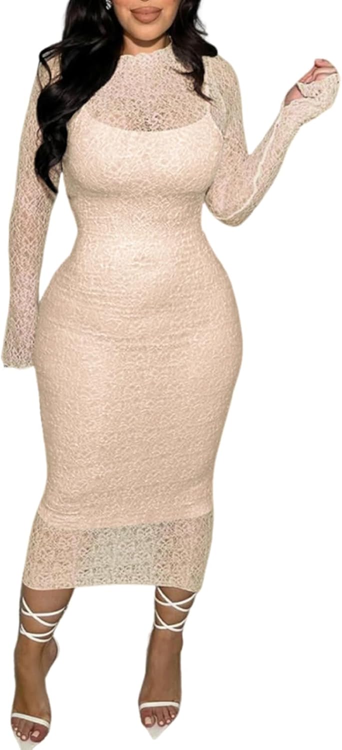 Elegant Lace Bodycon Long Midi Dresses 2 Piece Set perfect combination of two long dress showcases a sexy and elegant style. The lined tight dress has adjustable shoulder straps, is easy to put on and take off. When you put on the lace long midi dress on the outside, it has a sense of coverage, fits well while still maintaining a fashionable look.